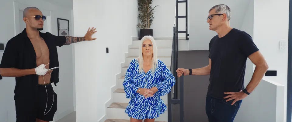 The documentary is ultimately a bit of a dud. Theroux pokes fun at the men, tries to undermine their totalised and reductive world view, but I agree with the wider consensus that he missed a trick by not speaking much to the women involved. The scant moments where he does are the most illuminating in the whole film; when girlfriend Angie speaks out about her wishes, or when assistant Icy is literally silenced by the men in real time, or best of all, when Harrison Sullivan’s mum Elaine treats him like the little boy he really still is.